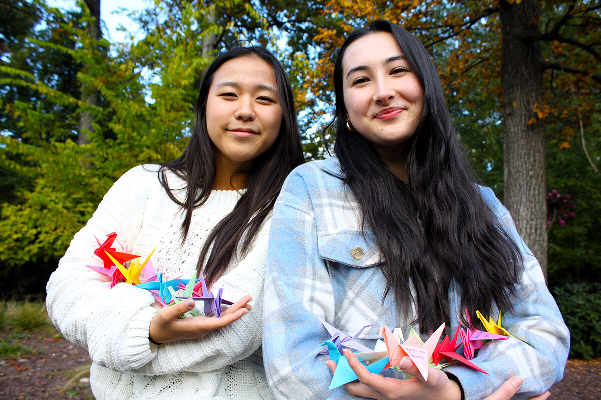 Kateri Jarvis and Hannah Kim hope classmates will help them make hundreds of origami cranes to give to Hospice of the Chesapeake patients.