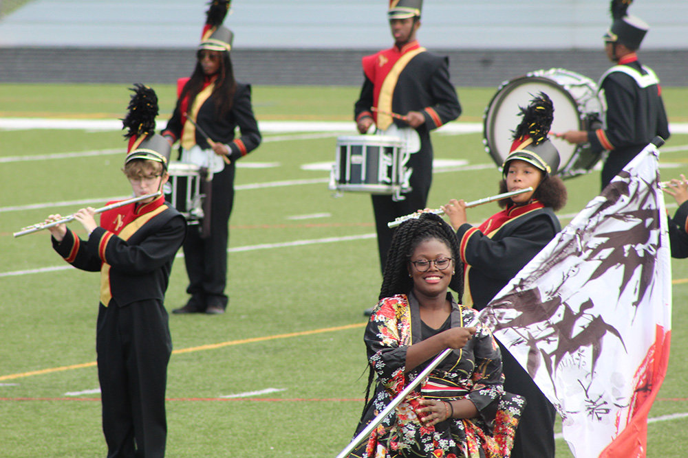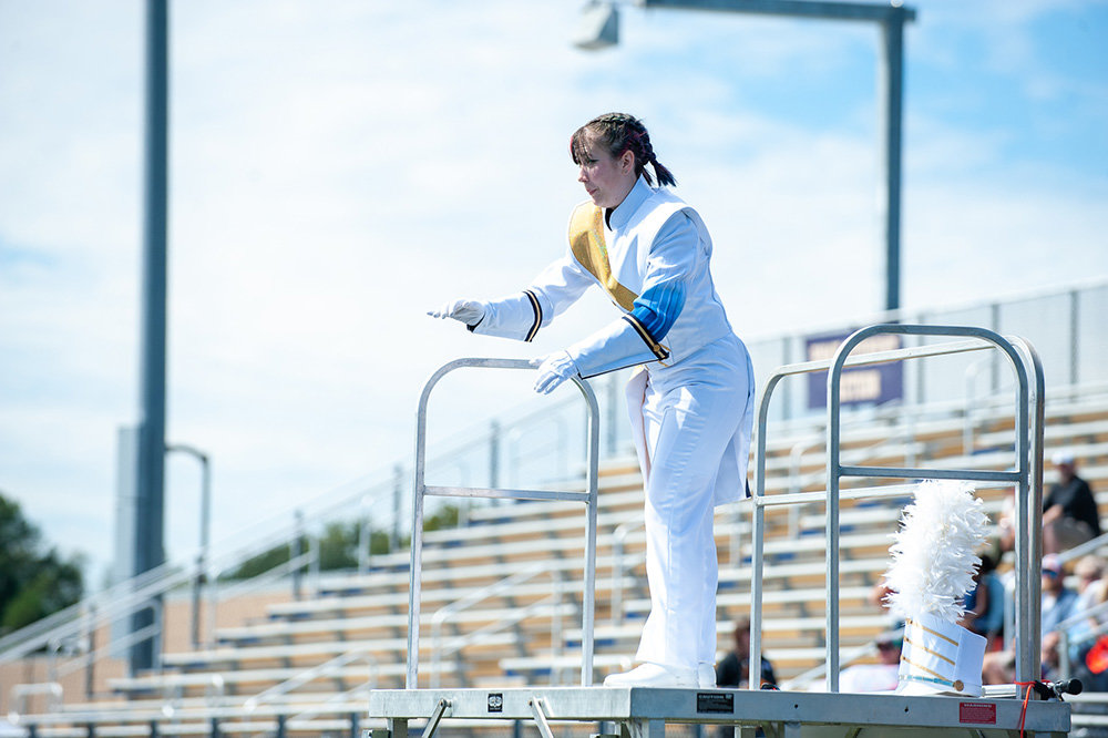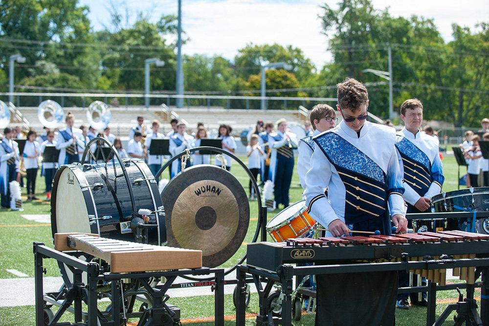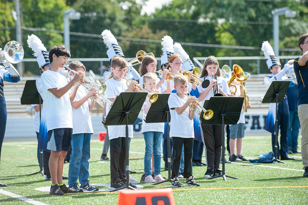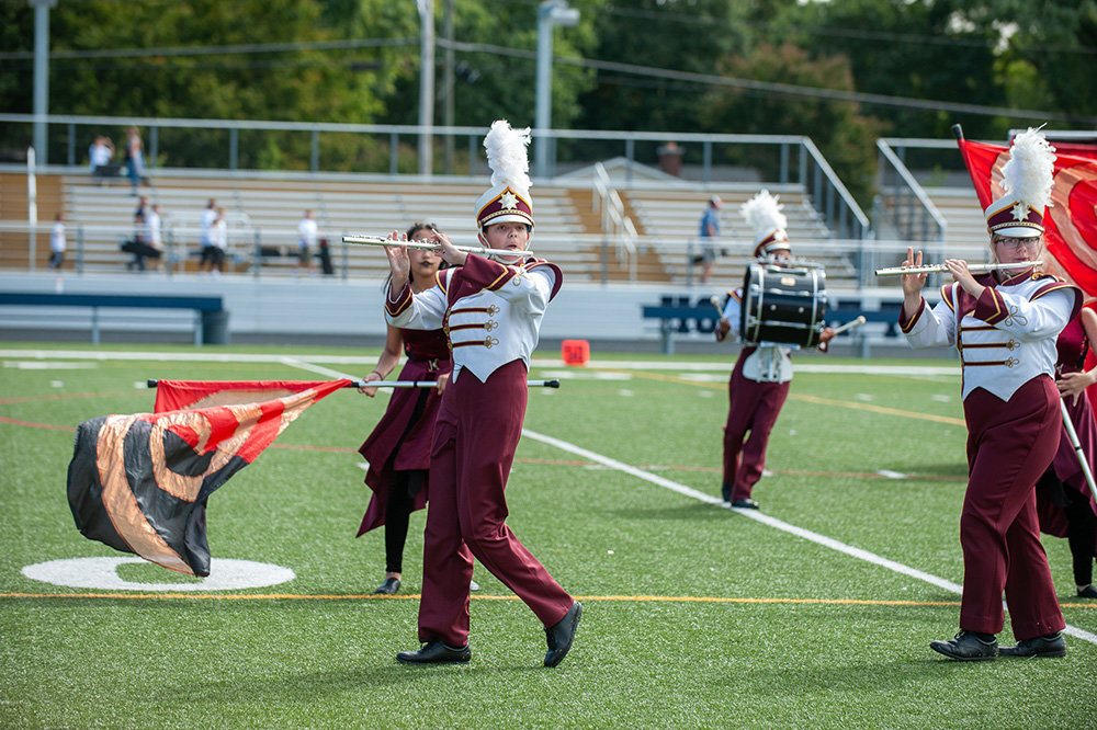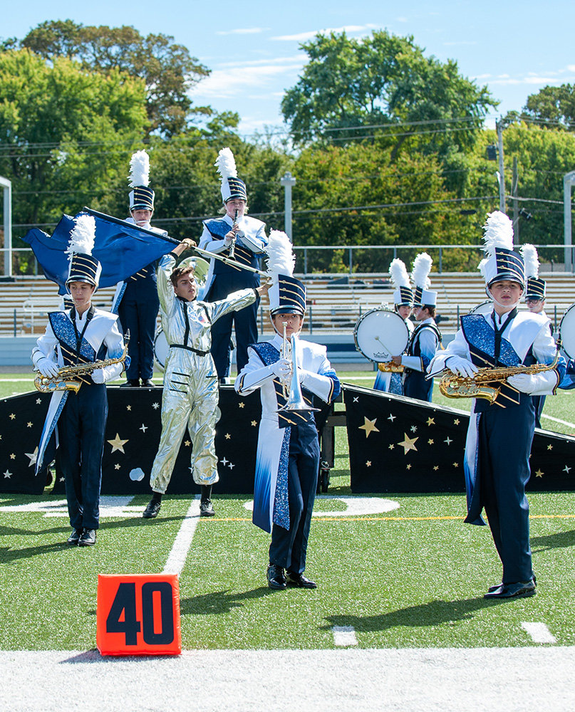More than 20 bands took the field at Severna Park High School on September 24 for Marching in the Park. Severna Park performed the national anthem with the assistance of approximately 70 "Future Falcons," a term for band and orchestra students from Severna Park feeder schools — both elementary and middle schools — as well as a few alumni. The Falcons then performed their “Intergalactic” show near the end of the event.