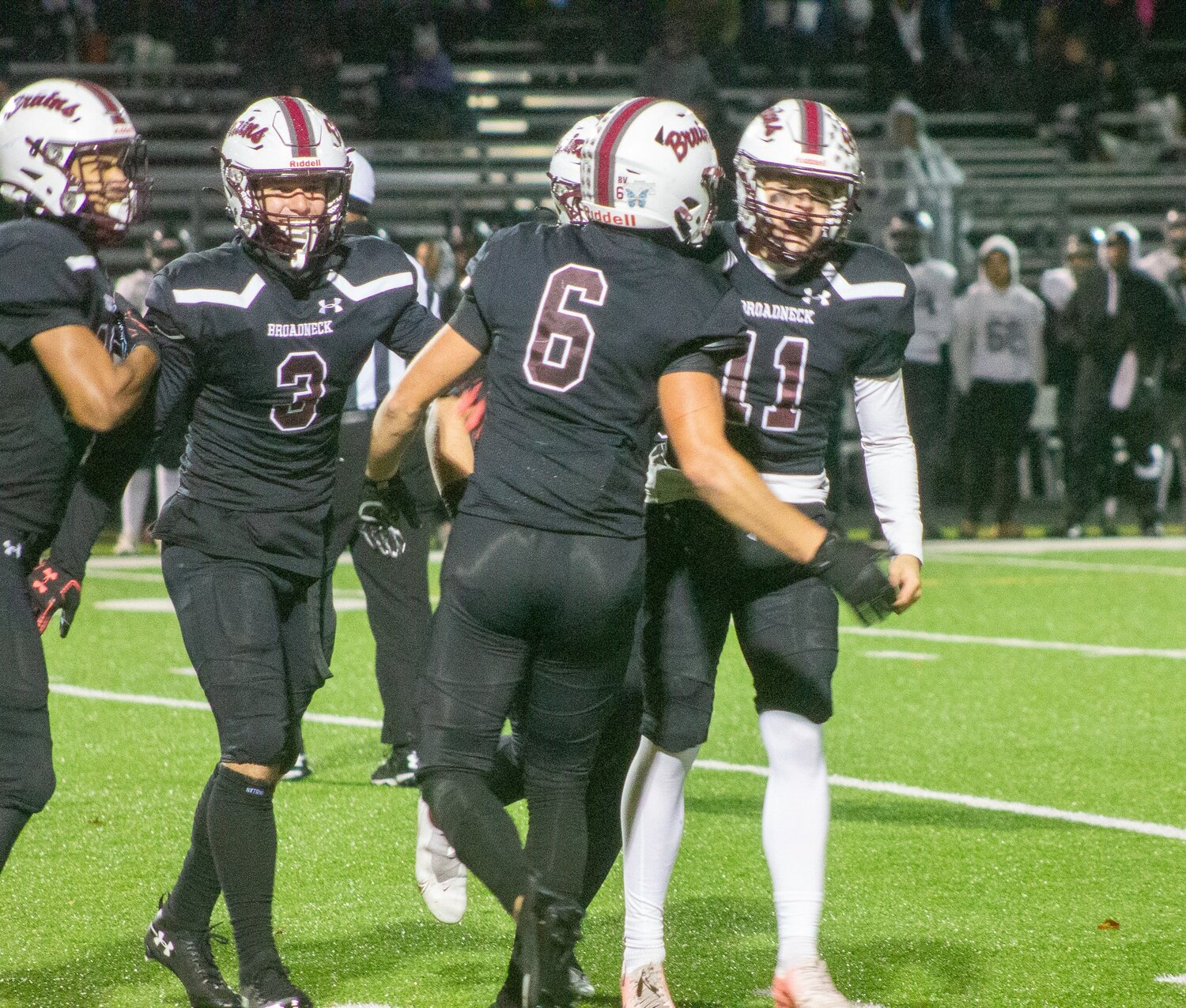 “Playoff football is a little different. It’s a little bit tighter. We played a good team tonight, and we’ve had some tough games,” said Broadneck coach Rob Harris. “Our kids didn’t back down and they went toe-to-toe with them, and they believed they were the better team the whole week, which is awesome. … we did what we needed to do to win. Sometimes it’s not always pretty, but you get the W, and that’s all that matters.”
