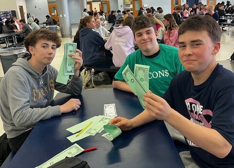 On Wednesday evening, the community was invited to attend Financial Family Night, which covered college costs, trade certifications, and military options. The Signature Program partnered with AVID, and together, students developed informational trifolds linking finance and business majors to the colleges and universities that offer them, as well as the career opportunities associated with those degrees and certifications. The week concluded with lunchtime trivia on Friday, hosted by Henson, as students answered questions about dollar bills to win prizes. A total of 569 students took part in the week’s activities, making it a resounding success.