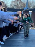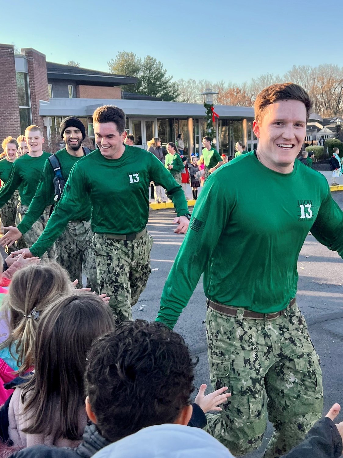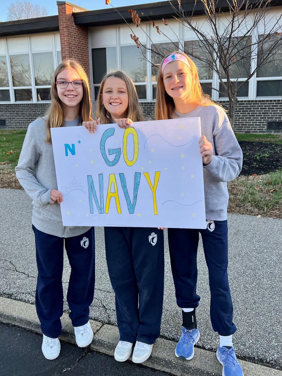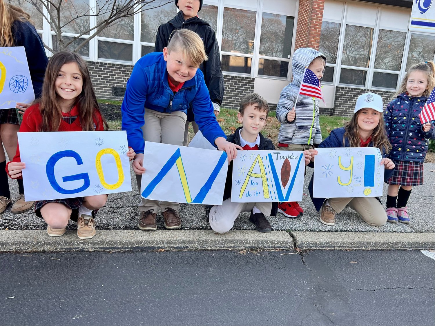 St. John the Evangelist students cheered on midshipmen who passed by the school Friday morning as part of their route to Philadelphia. The Army-Navy game will kick off in Philadelphia on Saturday at 3:00pm.