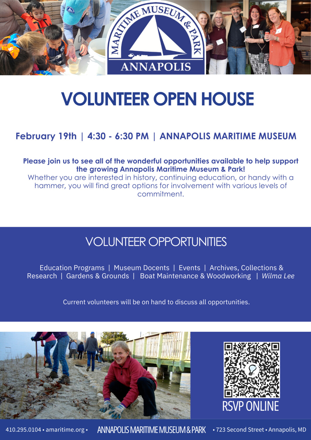 The Annapolis Maritime Museum & Park (AMM) invites all enthusiasts of maritime heritage and the ecology of the Bay to its Volunteer Open House on Monday, February 19th. Whether you're interested in education programs, guiding visitors as a museum docent, supporting events, assisting with archives, contributing to garden and grounds maintenance, engaging in boat maintenance and woodworking, or joining the crew of the historic Wilma Lee skipjack, there's a volunteering opportunity waiting for you.