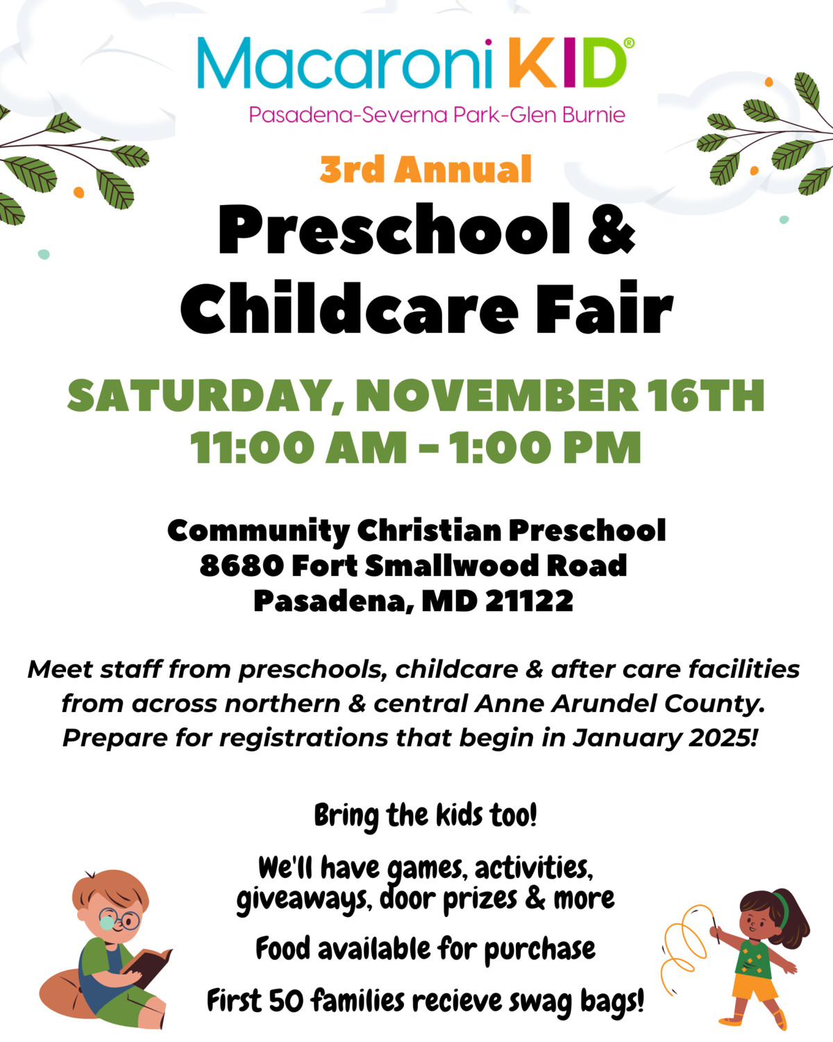 - Meet staff from preschools, childcare, and after care facilities in the central and northern Anne Arundel County areas. Care for infants through elementary age.